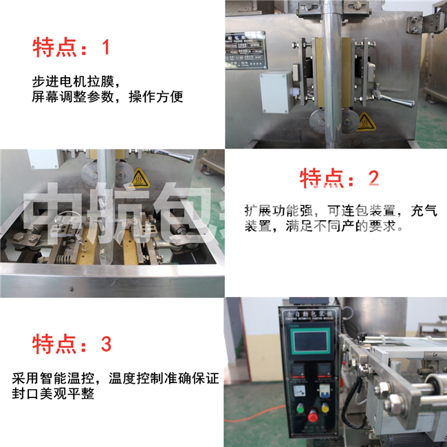 制袋式灌裝機用于食品、醫(yī)藥、化工、農(nóng)業(yè)、土特產(chǎn)等行業(yè)。具有一定流動性、粘度較低物品的包裝。